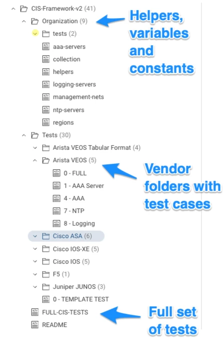 - In the Tests folder there are vendor-specific (or in Cisco’s case, OS-specific) folders.