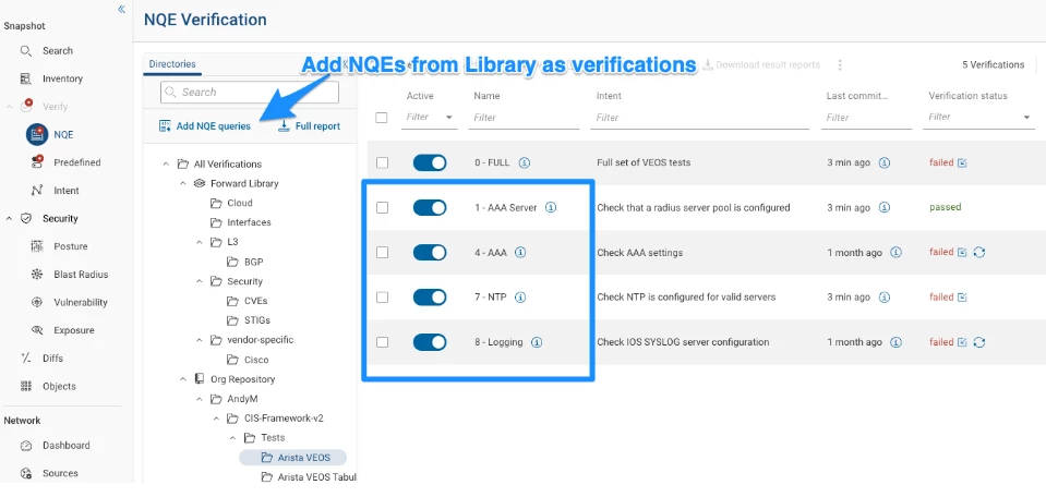 Once the tests are written and published in the NQE Library, they can be made into NQE Verifications so that they run on every collection.