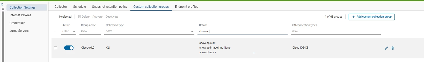 - Add Custom Command to IOS-XE for collection “show ap image | inc None”