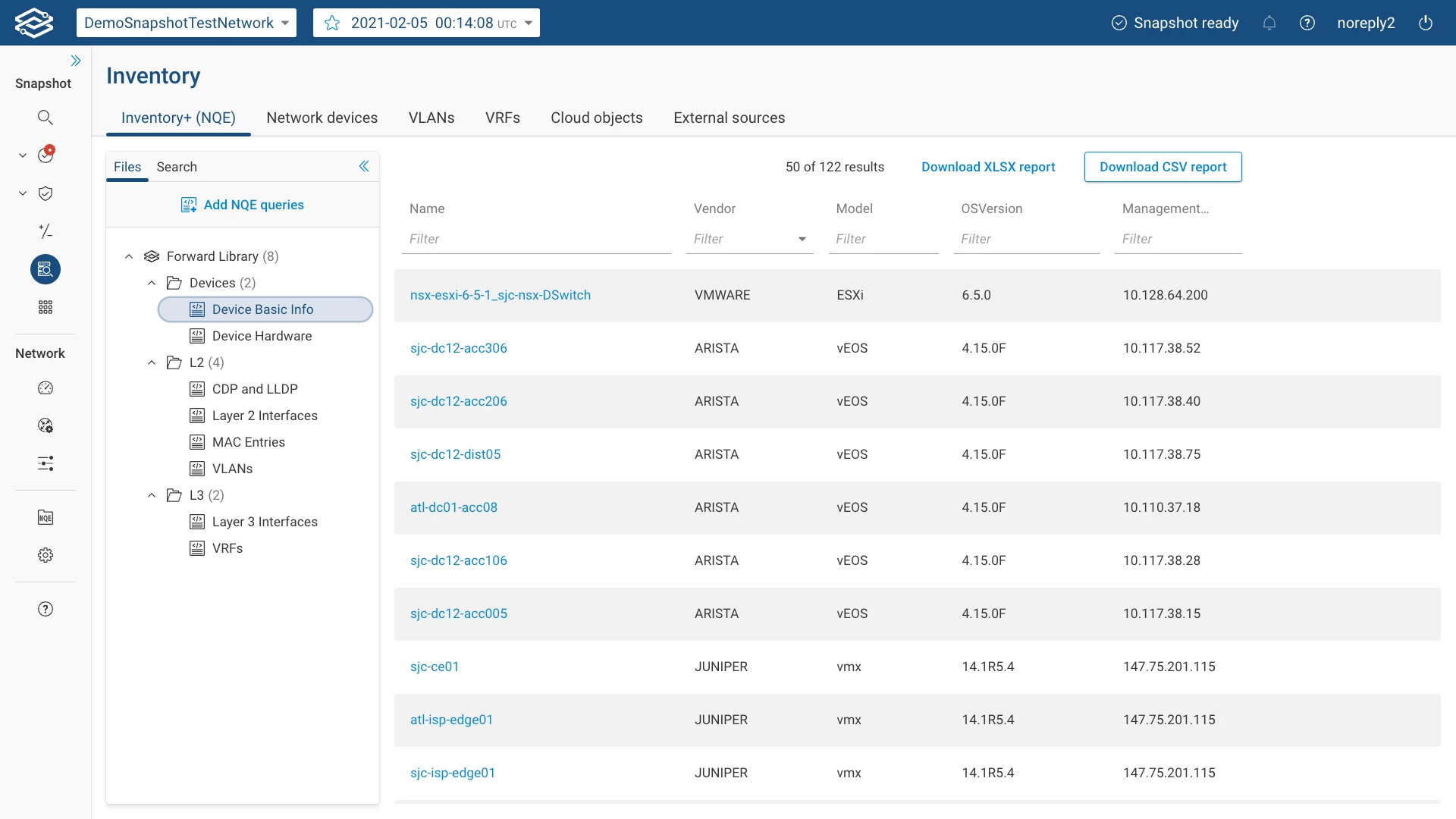 Release 23.4 introduced Inventory+, Forward's new Inventory experience based on fully customizable NQE queries. The new experience unlocks and democratizes access to the network data collected and processed by Forward.