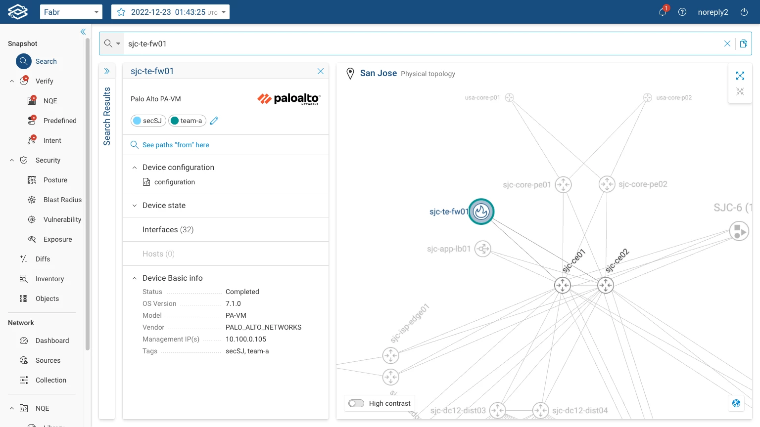 The 23.6 release introduces Entity Decorators, a great new functionality based, yet again, on one of the most loved feature of the Platform: NQE. With Entity Decorators our users can augment other Forward applications with metadata coming from the NQE data model. In this first iteration, our users can augment the device card, the interface card, and the host card; these components are referred to as the "entities". The idea is to link NQE queries results to these entities. These linked NQE queries are referred in this context to as the "decorators". This great new innovation allows the user to customize and enrich the data surfaced by some of Forward applications. In the next release, our users will be able to "decorate" path search results as well.Â