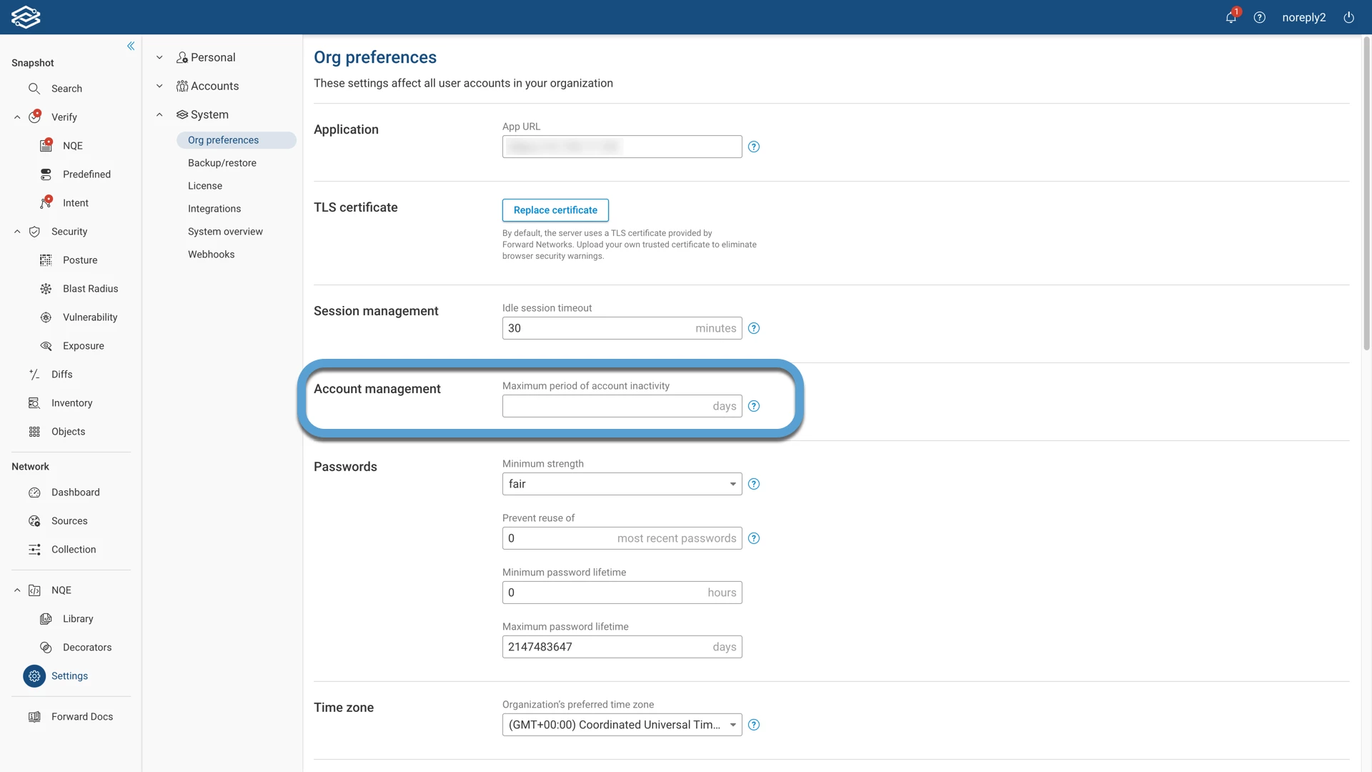 This feature provides the option to set the maximum inactivity time for local accounts. Once the account has been inactive for more than the maximum allowed days, the account will be disabled. The Org Admin can enable the account again by navigating to the User Accounts page by navigating to: Settings -> Accounts -> User Accounts.