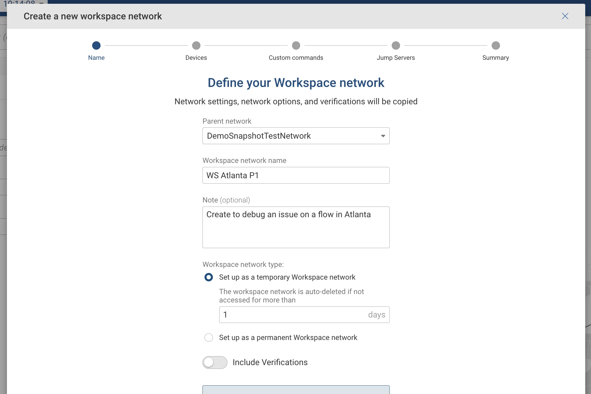 The “Workspace network auto-deletion days” org-wide setting has been moved to a per-workspace configuration and removed from the UI and API. This change means existing settings will automatically apply to current workspaces, ensuring they are deleted when they expire. API-created workspaces must now include a retentionDays property, or they will be considered permanent. Each workspace in the network dropdown now shows a retention countdown timer or a permanent status.