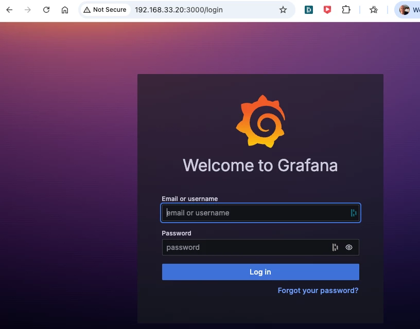 At this point you should be able to browse to the server on port 3000 and see a Grafana login.